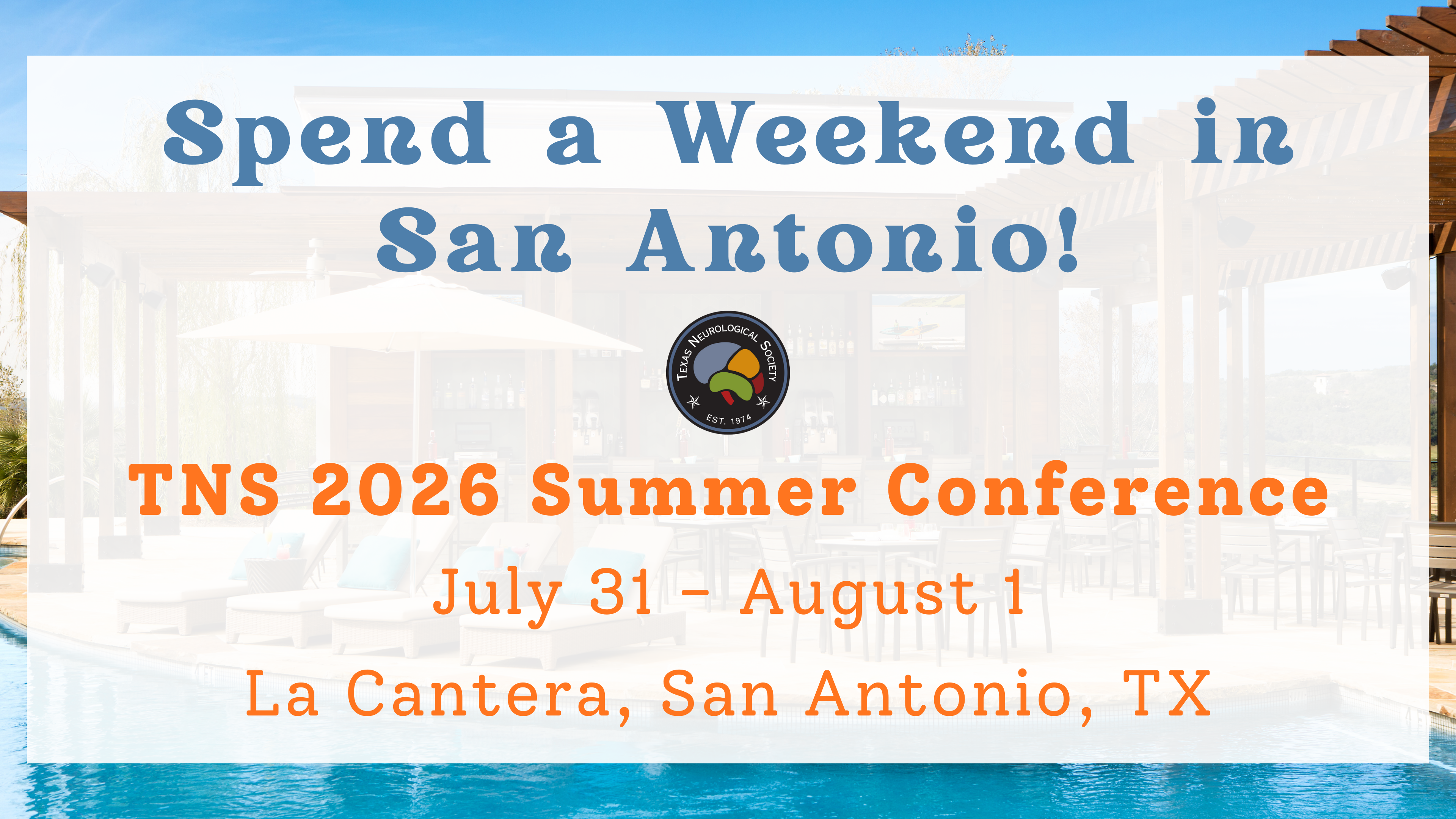 The Texas Neurological Society is the nation's largest state neurological society with over 900 members. Join our community to advance the field of neurology and advocate on behalf of our patients and practice.